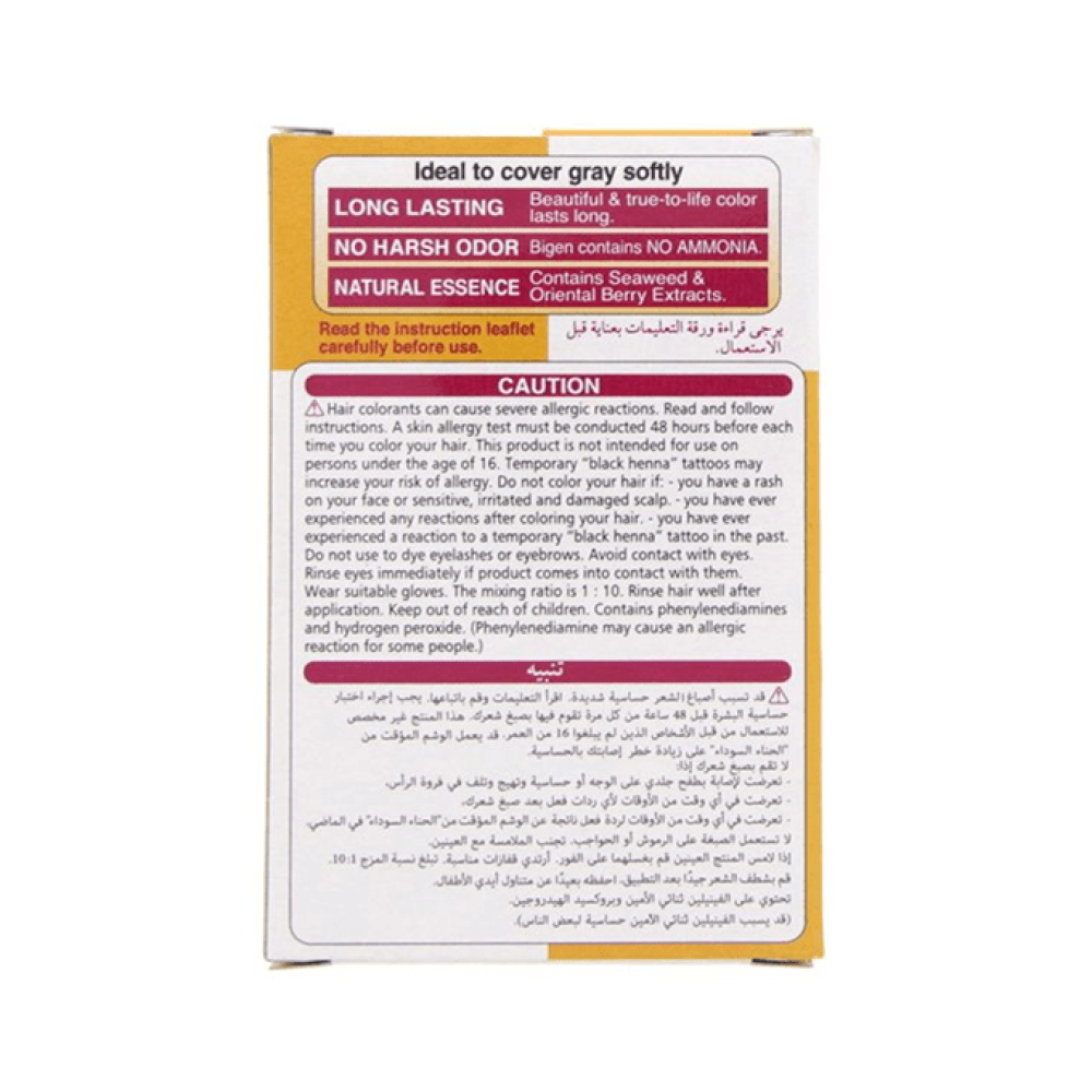 مسحوق صبغ الشعر من بيجين :بودرة صبغ الشعر بيجين ليجدد لون شعرك سهل الإستخدام .حيث تستطيع إستخدامة فقط بإضافة الماء ولا يسبب رائحة مزعجة.يتكون من زيوت طبيعية تمنح شعرك ترطيب مكثف و حماية للشعر المصبوغ.يوفر تغطية خالية من العيوب للشعر الرمادي للحصول على نتائج مناسبة.كثافة لون عالية و مذهلة تظل ثابتة دون أن يتلاشى.استمتع بشعر ملون جميل مع بيجين!